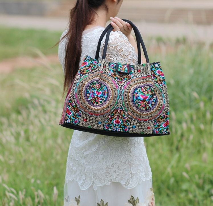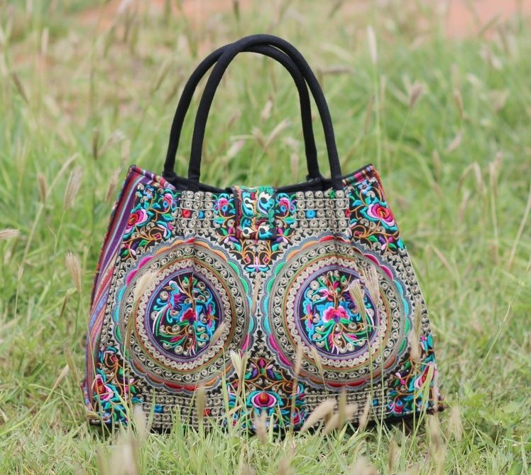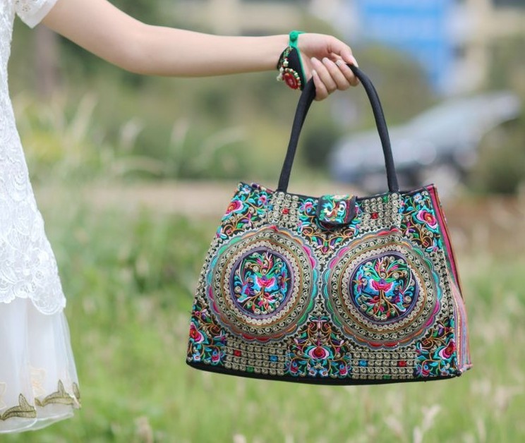 | 厂家批发:新款少数民族特色铜钱绣花包 | ||