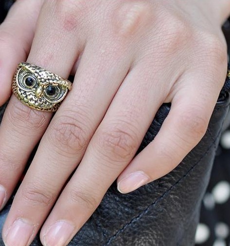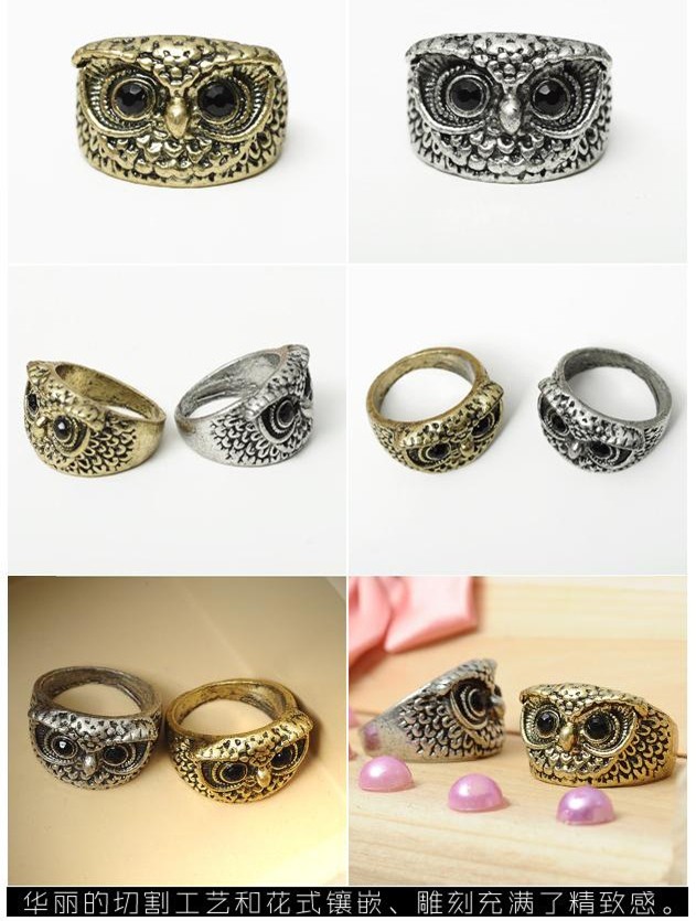 厂家批发:韩版复古夸张猫头鹰戒指