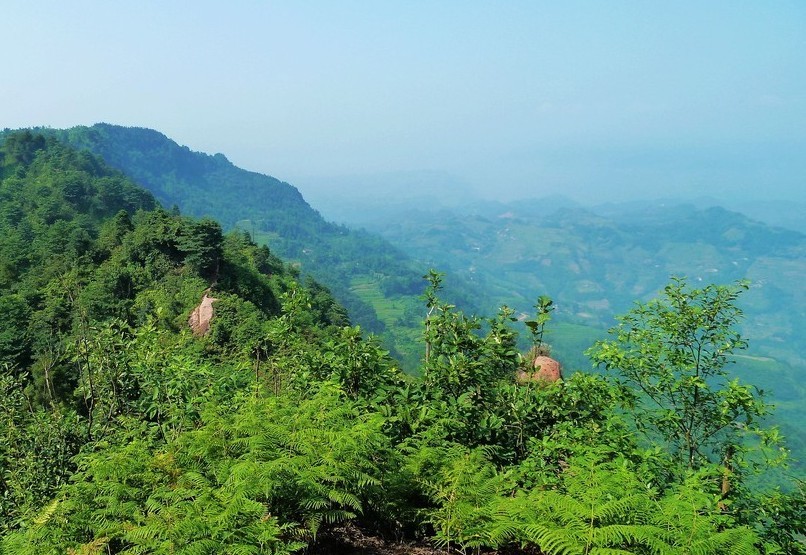 石城山森林公园 位于四川宜宾县横江镇境内石城山上。总面积5500亩,其中森林面积41 00余亩。石城山山势由西南向东北倾斜,错落有致,气势磅磁,海拔840~1115.9米,气候温和,四季分明。山中气温低于山下6C~7C,是理想的避暑胜地。山中常年林木葱茏,绿波万顷;四季山花烂漫,香飘四野。公园内植物原属常绿阔叶林区,种类繁杂,多为樟科、壳斗科等喜湿阔叶树种。民国年间驻军滥伐林木以充军响,毁损严重。50年代初,开始人工营造以针叶树种为本的用材林。珍稀树种有帧桶、香樟、红豆、锥栗等;散生树种有楠木、臻于、麻烁、木荷、摊木等30多种;灌木有油茶、杜鹃、木姜于、铁仔等;竹类有捕竹、水竹、苦竹、画眉竹、慈竹等10多种,其中楠竹3.25万株:草本植物有凤尾额、三叉藏、芭茅、兰花等:还有天麻、金银花、柴胡、无冬、麦冬等40余种中药材。有猴、山羊、刺猬、松鼠、锦鸡、竹鸡、斑鸠、画眉、喜鹊、黄鹭等野生动物。整个公园融山水自然景观和人文景观于一体,主要景点有:雨师洞及洞外建于明代的雨师庙、凌空飞架的3000米长古栈道、波光潋滟近百亩水面的叠翠湖,还有立于顶峰峭壁上的"隐身大佛",高约70米,颇有人工雕饰的神韵。