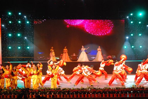 龙腾三江,三江六岸炫舞迎春;春暖宜宾,宜宾大地欢歌纳福。今天晚上,由市委宣传部、市文广局、宜宾广播电视台联合举办的“龙腾三江闹新春”——2012宜宾市春节联欢晚会在酒都剧场隆重举行,为全市人民送上了一台精彩纷呈的节日盛宴。 晚会在《龙腾三江闹新春》系列大型歌舞中拉开帷幕。晚会着重突出浓浓的年味,突出新春的喜庆氛围。和往年春晚相比,今年的春晚在不论是舞台艺术,还是节目,都给人全新的感受。
