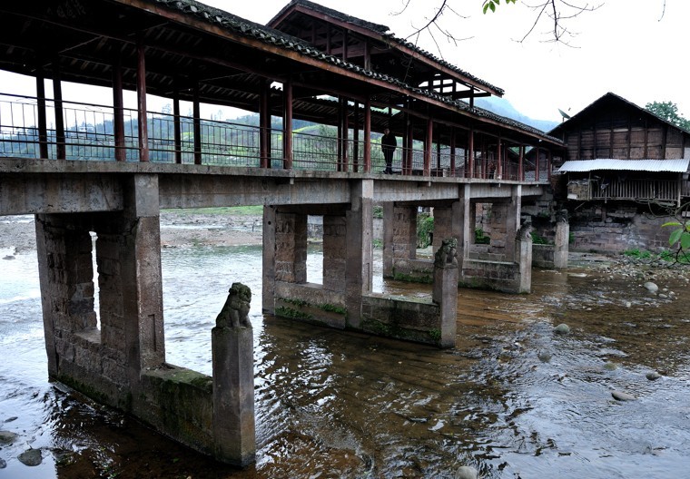 “最美古街” 龙华古镇 宜宾龙华古镇位于屏山县屏山镇南37公里处。因有明代所建龙华字而得名。国家级历史文化名镇。从川南重镇宜宾市沿金沙江西行70余公里,经过屏山县城再沿着曲折盘旋的山区公路北行37公里,便到了龙华镇。 龙华,是一个依山临水古风依然的小镇,因龙华寺而得名。它的南面是起伏绵延的老君山,大龙溪、小龙溪在镇北口相汇后流入岷江,八仙山风景区隔溪与古镇相望,环境优美,民风淳朴,有现今世界上最大的立佛———八仙山大佛。由于大山的阻隔,使得龙华完好地保留下了它的历史风貌,有古镇活化石之称。 龙华镇的地理位置在古代十分重要,是彝汉争夺之所,三国时诸葛亮南征孟获曾亲率大军从这一带开进凉山,渡金沙江入云南。 龙华凉桥 凉桥夜景 漫步古镇,龙华的特色扑面而来:古桥、古街、古巷、古风浓郁。一座颇具特色的风雨桥———龙华凉桥如长虹卧波,横跨在小龙溪上。步上凉桥,但见大小龙溪两岸古榕成排,枝叶垂溪,流水淙淙,鸭群戏水,石墩成阵,槌衣声声。岸上民居错落有致,炊烟袅袅……好一幅小桥、流水、人家的市井风情画。古代城门 过了凉桥,进入古寨门,便步入了至今保存完好的清代三条街,名曰顺河街、新街、长街,皆是石板铺路,宽不过三四米,岁月在石板路上留下了道道凹印。古街左右两旁为清一色的木结构房屋,一楼一底,高低错落,层层叠叠,向镇中心延伸。顺河街沿溪而建,错落有致,三官楼临溪而立;新街实为老街,无一不是清代民居建筑;长街其实不长,曲曲弯弯。位于正街上的龙华寺由于年代久远,仅存遗址柱础和部分建筑,倒是不远处建于清代乾隆年间的禹王宫尚基本保存完好,主殿台基两侧的七幅高浮雕古代戏剧故事画雕刻精美,栩栩如生,如“赵匡胤洗马救驾”、“三英战吕布”、“长板坡”等,深浮雕花格图案将这些图画连接起来,颇富装饰美。