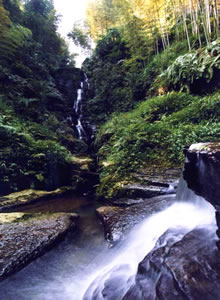 在县城西20公里的僰王山镇,槽坝相连,叶陌交通,博望山干地凸几,四壁绝崖凌空,主峰黑帽顶高耸入云,海拔达1180米。山L植被葱翠,均海茫茫,清幽静雅;山门沟谷溪流、瀑布湖潭、洞穴奇石等自然景观字熔宙冶,浑然天成。 主要有飞雾谷、道洞、黑帽顶、寿山湖等片区。集山水之精华,汇瀑布之大观。僰王山由南向北五条溪流,在山门沟谷中透迄穿行,形成数量众多,形状各异的瀑布群:有起伏跌宕,绵延数R米的梦溪叠瀑;有飞流直卜,如白龙出洞的龙泉瀑:有"大吼三声雨就来"的同声瀑;还有雨后四面八方皆是瀑布的宝盆谷围瀑……