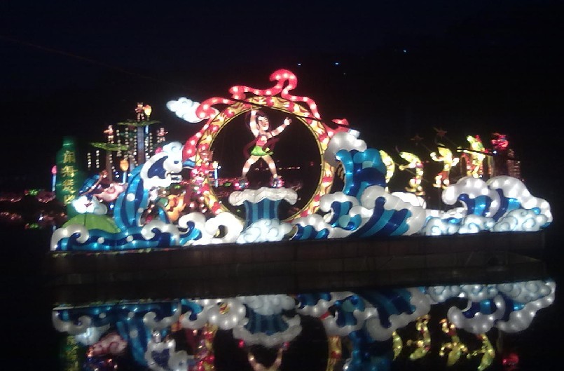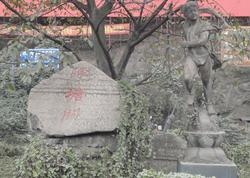 哪吒洞 1990年7月,赤日炎炎,骄阳似火,寻根访祖观光团出发了。但是,祖国大地,纵横几万里,各地的哪吒庙数以千计,翠屏山、三汊口之类的地方所在多不胜数。梦中的翠屏山在哪里?真正要寻找的哪吒主庙和哪吒洞在何方?大家并不明白。黄樟先生想到,哪吒在梦中曾言:“南京上海救难儿”的诗句,决定先去南京。在南京四处察访,漫山寻遍,大失所望。这里的三岔口位居陆路要冲,并无江河流经;翠屏山上也无庙宇、岩洞踪影。 哪吒神像 第一站扑了空,黄樟先生等人向南京中国旅行社求助。中旅社请教了南京的几位历史学家和考古学家,提出的意见是:哪吒的神话传说与“龙”关系密切,四川自贡是著名的“恐龙之乡”,不妨到四川自贡一带去看一看,或许会有所收获。 陈塘关哪吒雕像 黄樟先生率领的寻根访祖旅游观光团接受了这个建议,又来到自贡。参观了大山铺恐龙博物馆,考察了附近的山山水水,仍然没有找到三汊口,也没有找到翠屏山。就在这山穷水尽疑无路的时刻,传来了令人振奋的消息:距自贡不远的宜宾市有个翠屏山,山上有个哪吒洞,供有哪吒神像;山脚下两江(金沙江、岷江)汇合处乃三汊口。黄樟先生和随行人员欢欣鼓舞,当即决定前往。 哪吒七岁,天旱地裂,东海龙王滴水不降,还命夜叉去海边强抢童男童女 。哪吒见义勇为,用乾坤圈打死夜叉 ,又杀了前来增援的龙王之子敖丙。 第二天一早,黄樟先生率领的观光团驱车直奔宜宾翠屏山。来到山下,黄先生举目远眺,见两江汇流处江水奔腾,山势逶迤,两座宝塔隐约可见,翠屏山更是地形奇秀,佳木葱笼,竟与梦中所见一般无二,不禁脱口叫道:“就是这里!这就是我梦见过的翠屏山!”于是,将车停在山腰“蜀南楼”侧,整队登山。在没有导游的情况下,黄先生依照梦中所见,在前领路,善男信女们个个争先恐后,向上攀登。居然大致不差,顺利地找到了哪吒洞。