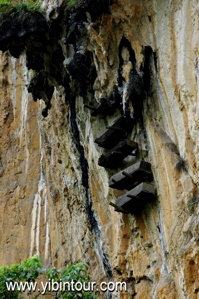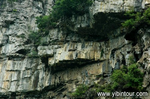 "僰人悬棺”位于珙县境内,系根据《珙县志》“珙本僰地,僰人多悬棺”而命名。早在1956年就列为省级重点文物保护单位,现为全国重点文物保护单位。僰人悬棺被称为世界之最、巴蜀一绝。悬棺葬是古代少数民族的一种葬制。珙县、兴文与云南接壤,为古西南夷腹地,汉武帝开夜郎,置犍为郡时属僰道县。历代僰人等少数民族聚居于这一带,故遗存的悬棺多,但现在最多和最集中处,当首推珙县洛表乡的麻塘坝和曹营乡的苏麻湾。珙县麻塘坝南北狭长,东西两侧奇峰挺拔,险拔峻峭的岩穴之间,许多棺木半悬山崖,在悬崖峭壁上现存悬棺160多具。距麻塘坝10多公里的曹营乡苏麻湾,陡峭的石灰岩壁上分布着悬棺48具。悬棺离地面多数为26至50米,高者达100米。悬棺的崖壁上有许多红色彩绘壁画,内容丰富,线条粗犷,构图简练,形象逼真。悬棺及岩画具有重要的历史价值和观赏价值,也是研究川南一带少数民族历史发展的实物材料。已成为世界悬棺葬研究者注目的中心,同时吸引着无数的旅游者。 这个景区充满古老而神秘的色彩。