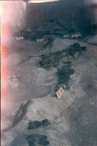 悬棺附近发现了比自贡恐龙还要早的恐龙化石。也即石碑恐龙--位于珙县石碑乡。离石碑乡有一小时步行路程,有乡村公路通上。这里还发现了深不可测的巨型溶洞,有一个据说可直接通到云南,曾有人