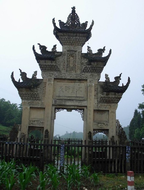 珙县虽不是佛教胜地,但散布于各乡镇的寺庙也为数不少。既有同半边寺一样历史悠久、几经曲折的,也有比半边寺建造得更具规模、更加堂皇的。而今天我们却唯独把半边寺呈现给读者,不仅是因为其处于僰人悬棺与龙抱山之间的区位优势,也不只是因其依山傍水的幽雅环境, 更重要的是两点:一是半边寺半寺半岩,岩中有寺、寺中有岩这种绝无仅有的建筑特色:二是僰人在珙县境内遗留下的除了具具棺木、幅幅岩画外,基本就是些棺木中发掘的随葬品了,而只有半边寺却还能找到僰文化的其它痕迹,那就是供奉的历史已久的阿氏三兄妹塑像。 距上罗镇东南2公里的南广河对岸,就是半边寺建造之处。去半边寺,下车后得乘木船过河才行。寺院临水偎岩而建,远看寺是岩,岩是寺,近看有半座寺院镶嵌在悬崖绝壁之内,因而得名半边寺。半边寺原叫龙君庙,修建于明洪武二十四年(公元1397年),当时的龙君庙只有上殿、下殿和一天然山洞组成,庙内仅供奉有龙王等几尊塑像,是名符其实的小庙。 寺院四面奇峰竟峭,沟壑纵横。从寺边奔流而去的南广河水绕寺而过,恰似一条绿色绸带。寺院环境清幽,林茂竹密,古朴典雅,景物异殊。在寺院的多处摩崖、碑碣、匾额上还有许多文人墨客留下的赞美诗句。其中尤以康熙年间叙州通判题写的七律诗为甚: 牵萝蹑壁更登梯,迤迹接仙境界奇。 重新修茸的半边寺虽然仍只是初具规模,但由于其独有的魅力,平常也香火不断,庙会时更是游人如织。 川南第一坊——隘口石坊 隘口石坊位于珙县缄南35公里的玉和乡隘口村,距上罗镇13公里,是清代当地贡生谢正业为其母建立的节孝坊。从道光28年(公元1848年)动工修建,历时三年半竣工。石坊竣严矗立,气势雄伟,古朴典雅,蔚为壮观。其雕刻工艺精美,手法细腻逼真,书法行云流水,绘画线条流畅。 虽饱经150余年风雨剥蚀,仍保存完整。素有“川南第一坊”之美称。1991年四川省人民政府将石坊列为省级重点文物保护单位。石坊坐北向南,通高17米,宽8米,占地面积80平方米,为四柱重檐构成的三开间立面,整体由多块巨大的米粉石垒叠而成,仿木构建筑,鸱尾雀替、飞檐造形,效果,尤其雕刻动物活灵活现,情趣盎然,生动传神。坊两侧抱鼓石屏上有深浮雕梅、兰、菊、竹,并配有篆、隶、行、草体诗赋,这些花草画面结构严谨,富有诗意。方形柱磋固座,座饰“莲花抱鼓”。石坊北面第三层坊檐斗拱下有深浮雕牡丹和仙人云纹组成的竖龛,龛内二力士抬着灵龟、缓带相绕的“墅旨”二字,再下为行书,横排“不负所天” 四字,并以深浮雕麟、象、“斗牛图”镶边。石坊北面、宝鼎下楷体立书“圣旨”二字,装饰如南。中柱南面有叙州府事叶澍东题联:“节孝著徽音形管新添青史册,纲常崇盛世丹除遥贲紫泥书。”侧柱有知县涂太深题联:“两字荣褒光日月,千秋正气烙神天。”北面正门有珙县知事拨进士题联:“誓欲捐躯但念半龄孤子在,心怀养志能分七衮老亲忧。”侧柱联由珙县教谕蓬州费淳修与训导巴县翁兰合题:“孤帏早励冰霜志,绰楔欣承雨露恩。”石坊上所有题字,虽体裁不同,但字体都貌丰骨劲,挥洒自如,给人以很强的艺术感染力。 石坊用石板栏栅围护,南北有如意素面踏道九级埋土中。川滇公路从石坊东侧经过,过往游人无不为古人精湛的技艺感叹不已。 总之,整个石坊内容虽多,但繁而不乱,主次分明,安排得体。既是一座高大的古代建筑,又是多种雕刻技法的有机组合,可谓工艺超群。它凝聚着前辈艺人的心血,显示了人民的创造才能。该石坊虽历经沧桑,仍不火为一座完美的艺术瑰宝,具有很高的艺术价值和历史研究价值。 |