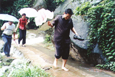 上周周末,“非典”后新开发的旅游新景区龙抱山迎来了第一批团队游客。客人们在雨中品味了龙抱山雨雾的柔媚、群瀑的震撼、神秘的野生猴群……