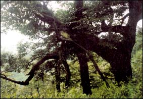 2、大海子景区 该景区在大雪山东南部,面积约10平方公里,高达1777.2米的大雪山主峰在该景区内。这里有成片集中、保存完好、层次分明的原始森林,主要分布在雪山、大榜两个村,面积1400公顷,森林覆盖率98%。景区内生物多样性特征明显,有国家一级保护珍稀植物(木+共)桐2万多株;奇花异果触目皆是,上百种野生动物主要活动在这一地带。最为壮观的冬天观雪。海拔1400米以上地区,从头年10月到次年2月为降雪期,莽莽林海,银装素裹,一派千里冰风万里雪飘的北国风光,这对很少降雪的南国来说,大海子景区无疑是一个很有吸引力的地方。概言之,大海子以原始森林观光和探险为主,主要有大海子、红军坟、九里十三湾、大雪山顶峰、阎王蹁、、钱窝子、猴子岩、牛场等8个景点,我们有选择地观赏。 大海子地势开阔,站在这里,可以看到大、小雪山山峰及其原始森林风光。往西北方向走是“九里十三湾”,那里九条山脊(岭)仿佛是克隆出来的,连悬崖峭壁几乎都相同;林深蓊郁,走进密林中根本无法辩别方向,总觉得是在原地徘徊,没有人带路,很难走出密林。我们去瞻仰红军坟。1935年,中国工农红军川滇游击纵队三次攻打筠军县城,七天七夜浴血大雪山,现在大雪山主峰下就掩埋着当年牺牲的红军。伫立红军坟前,无不让人感慨万千。 现在我们已经到了阎王蹁了。这是攀登大雪山顶峰的必须之路。这里地形险要,蹁长百米,下是悬崖,深数十丈,大家千万小心。特别是这一步路最为艰险,两道悬崖之间,称为“一步跨过仙界”,跨过时不能望脚下,否则胆怯生畏,打退堂鼓,前功尽弃。不远处有交阎王庙。 经过不短时间的艰难跋涉,我们总算登上大雪山顶峰了。站在这里,天近地远,方圆数百平方公里的千山万水尽踩脚下;睛空万里之时,可以清楚地看到300多里外的宜宾翠屏山,“会当凌绝顶,一览众山小。”诗中意境,哪一位还会说体会不到?无限风光在险峰,留给大家足够的时间,在这里尽情吟风赏景,遣兴抒怀。 下山了。我们走“钱窝子”经“猴子岩”到“牛场”。 钱窝子主要是观景。说是钱窝子,我们一文钱也看不到。当竹笋出土时,笋尖上悬挂着铜钱,有的笋尖穿过铜钱小孔悬挂在竹林中,有铜钱卡在竹托与竹干之间,十分有趣。 那儿是猴子岩,在小雪山半山之中,那里一派原始森林风光,可以看到成片的珍贵的一级保护植物(木+共)桐树,可以看到稀有动物猕猴、短尾猴等,可惜无路可走,不能去猎趣。 牛场到了。这里地势开阔而平坦,面积约100亩,给大家安排了篝火晚会,可以观赏少数民族的服装展示和观看少数民族舞蹈、山歌与情歌对唱等,还可尽情品尝大雪山人烹调的风味佳肴。 |